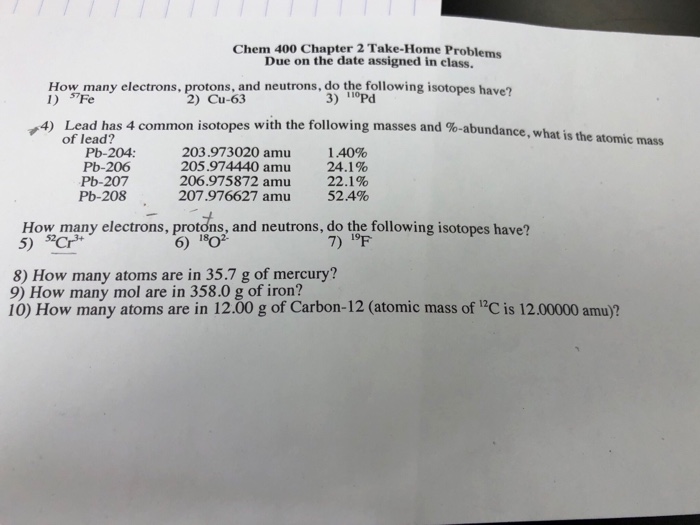 Solved Chem 400 Chapter 2 Take Home Problems Due On The Date Chegg Com