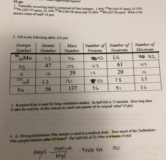 Solved 52 Icii Sihihcant Figures Naturally Occurring Lead Chegg Com